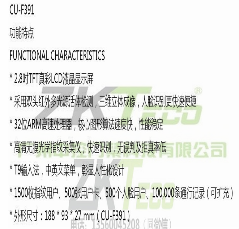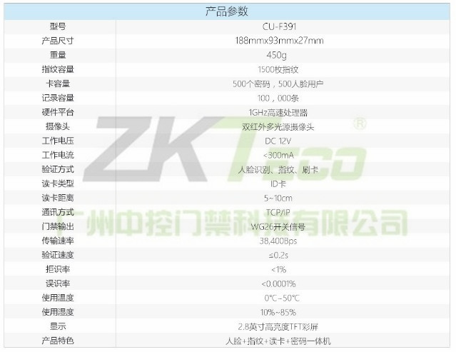 中控人臉識別指紋門禁考勤系統(tǒng)CU-F391